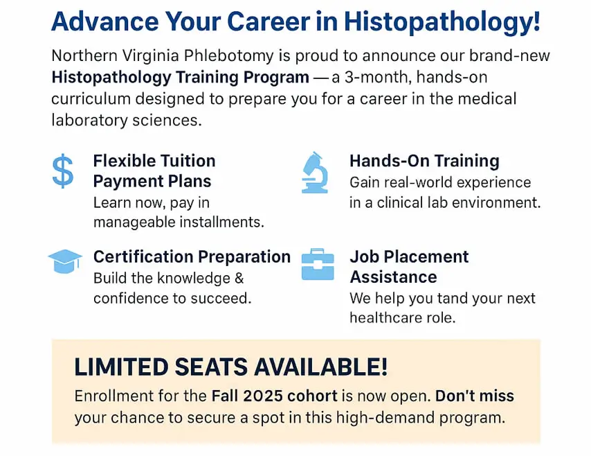 Join our Phlebotomy & I.V. Training Program, Histopathology Assistant Training in Northern Virginia!